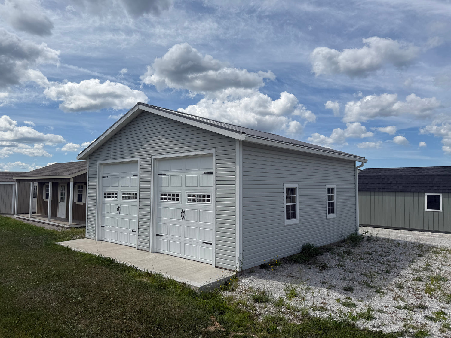 The FastFrame 2-Car Garage from Cedar Rock Barns is a cutting-edge, semi-assembled structure built on your property, providing immediate parking and storage solutions. This garage combines efficiency and high-quality construction, making it an ideal addition for homeowners. Customization options are available, allowing you to personalize the garage to meet your specific needs.