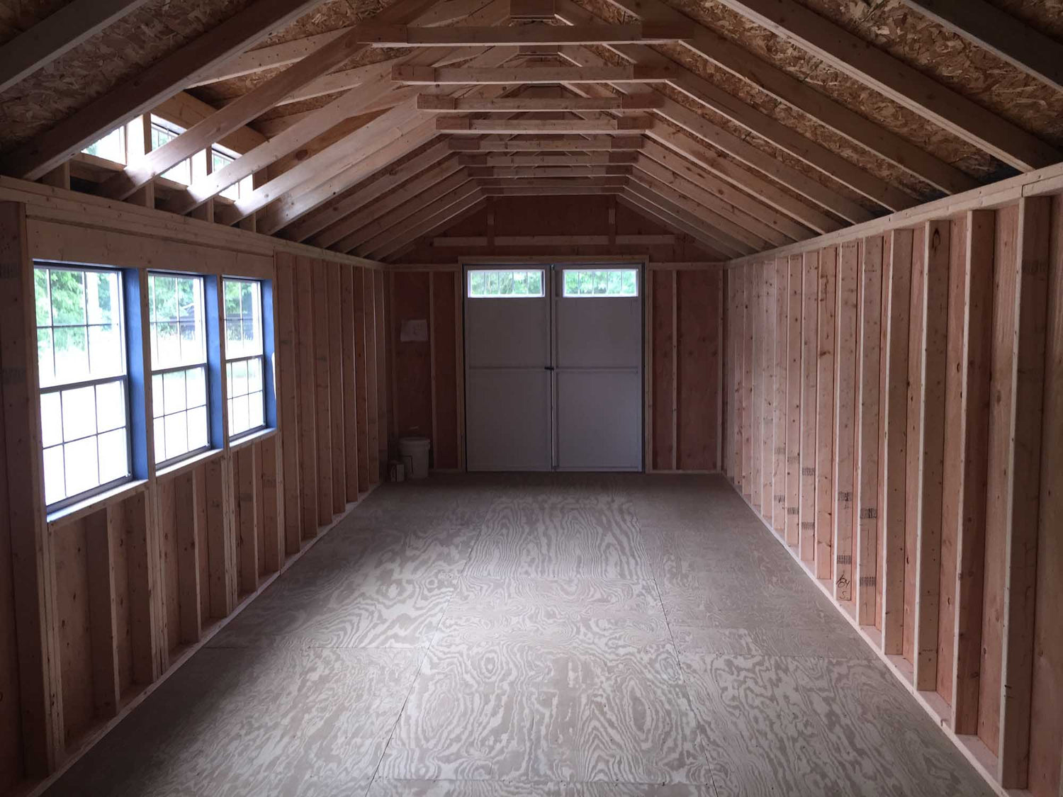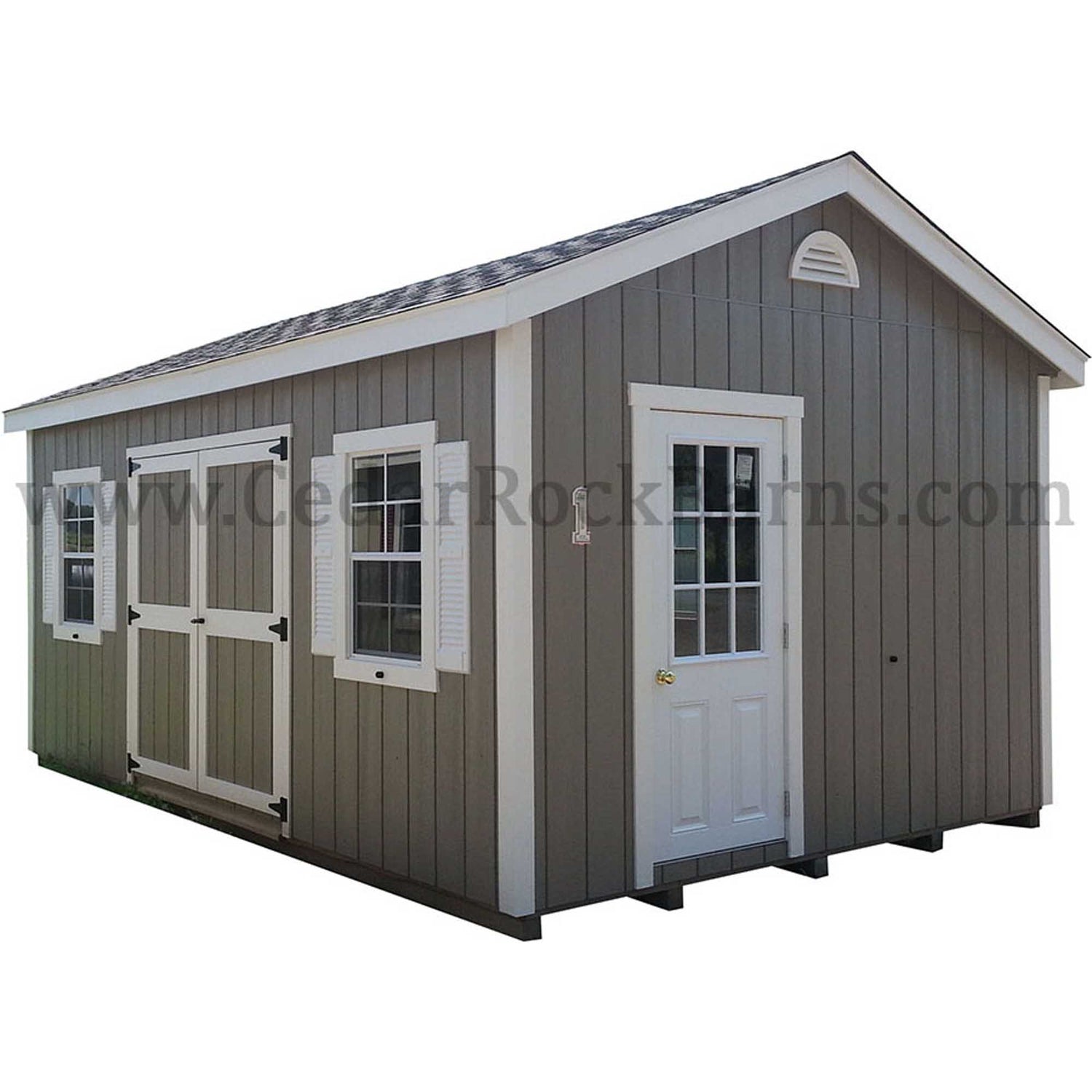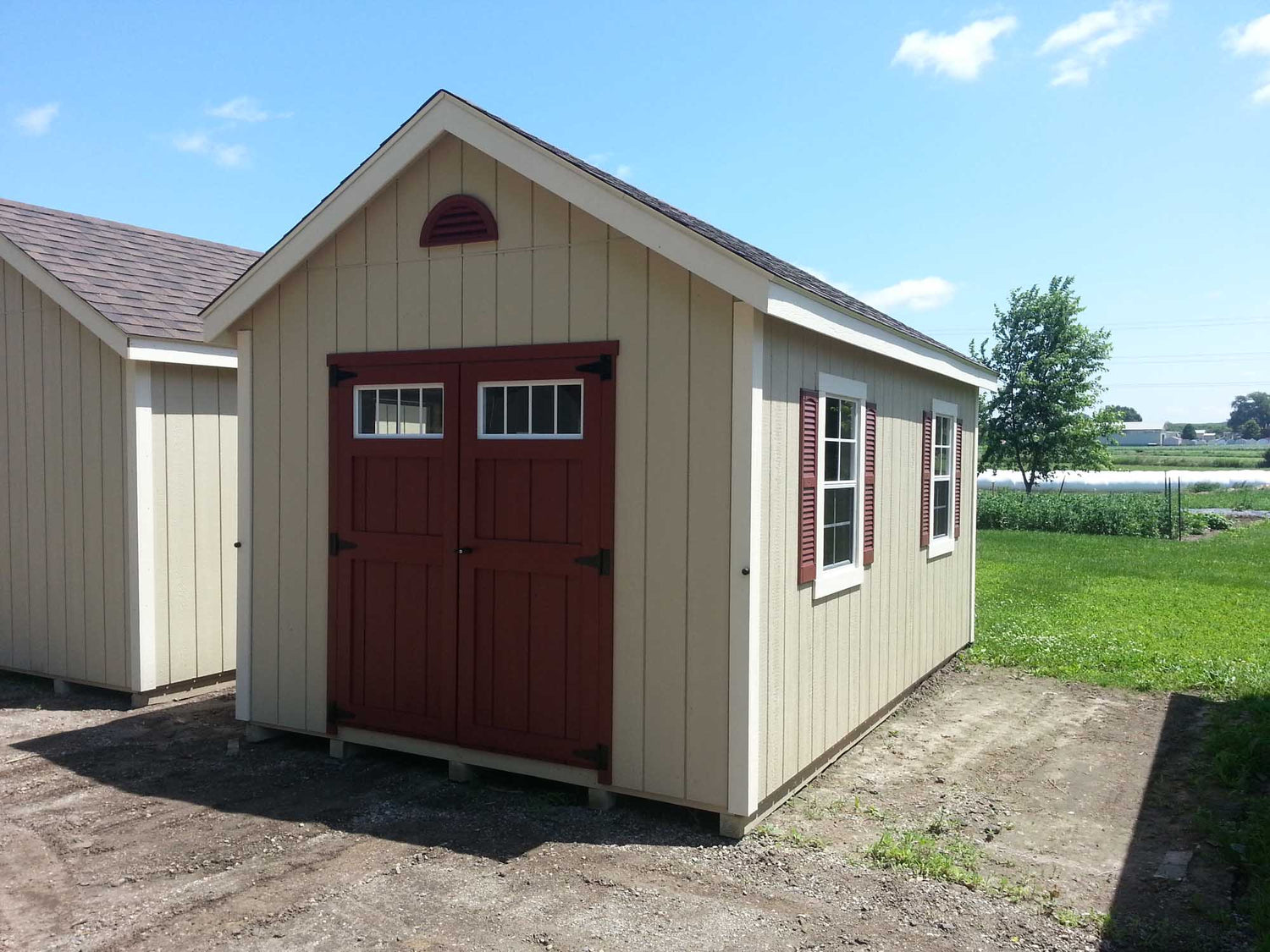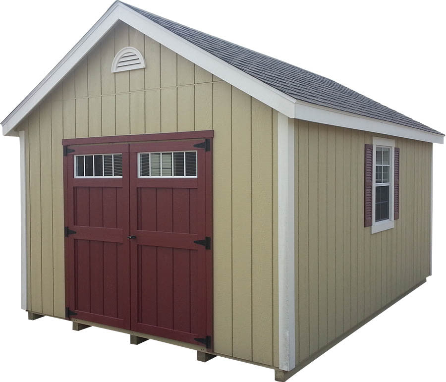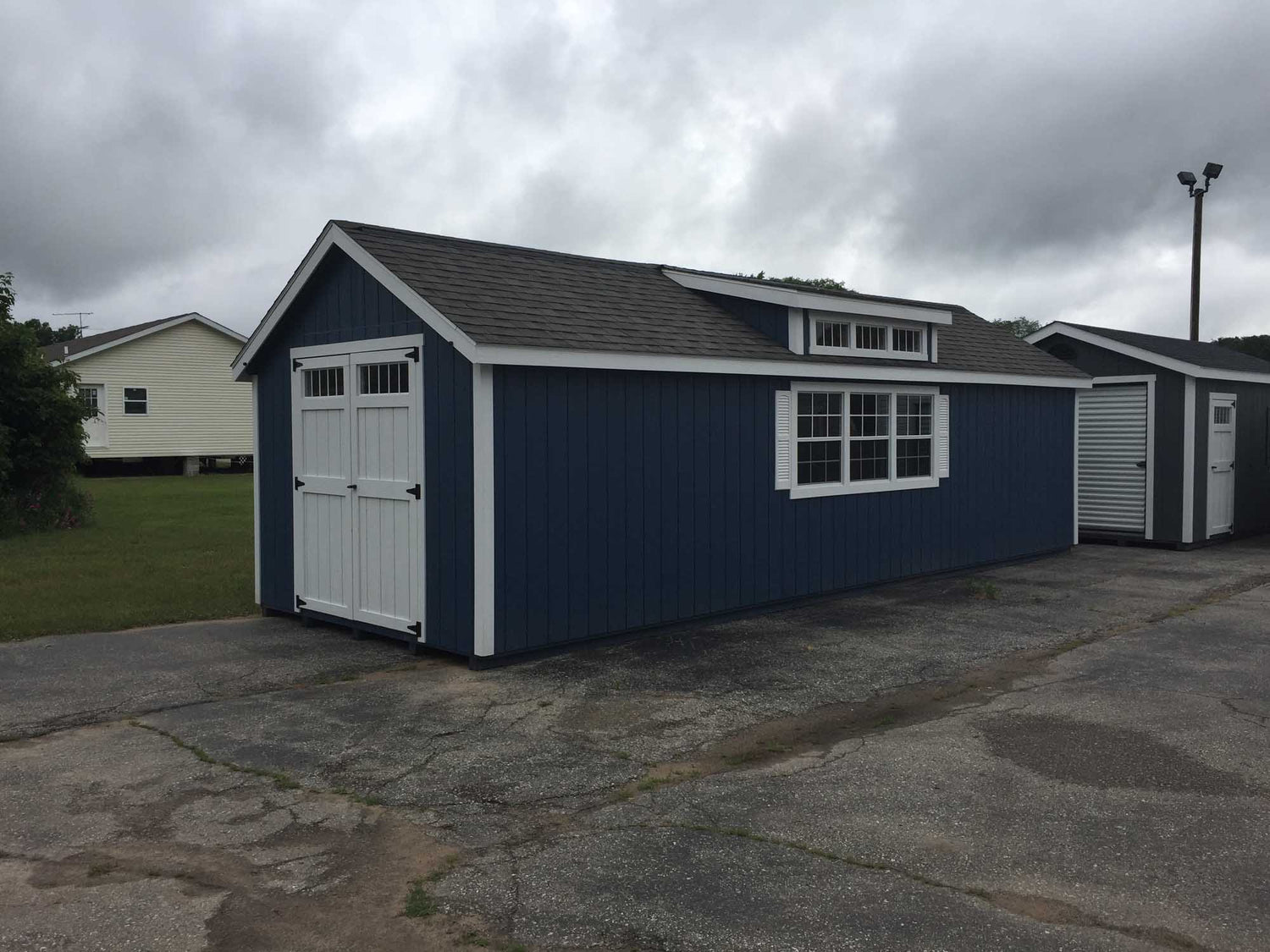 Our Painted Cape Cod Storage Buildings Have A Steeper 7/12 Roof Pitch And Comes Standard With One Set Of Double Doors, Two 21x27 Single Hung Windows W/ Screens and Shutters And A 4” Overhang Which Makes This Storage Building Stand Out From The Rest. Available In Sizes From 8x8 to 12x36