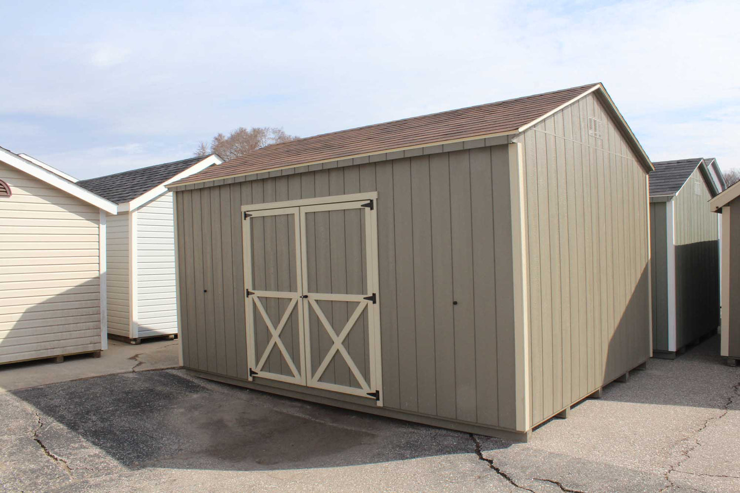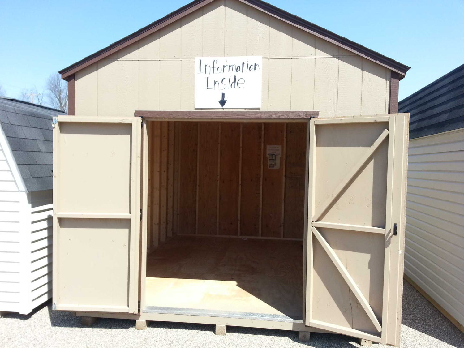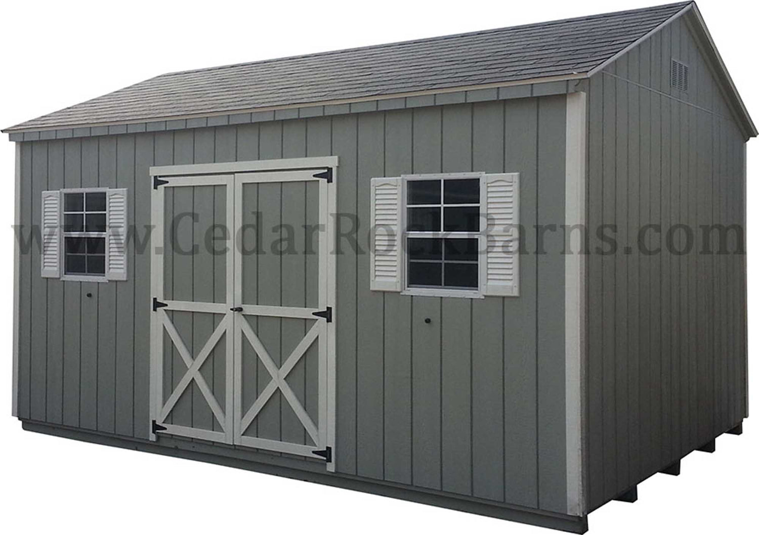Standing A Little Over 10’ Tall And With 7’ 4” Side Walls This Painted Cottage Portable Storage Building Works As A Storage Building Or A Workshop. Our Painted Cottage Shed Comes Standard With Double Wood Swinging Doors and Two Tone Paint. Available From 8x8 Up To 16x48 These High Quality Amish Crafted Storage Buildings Have 16” o.c. 2x4 Wall Framing, IKO 25 Year 3 Tab Shingles, Treated 2x4 Floor Joists, And T1-11 Siding.