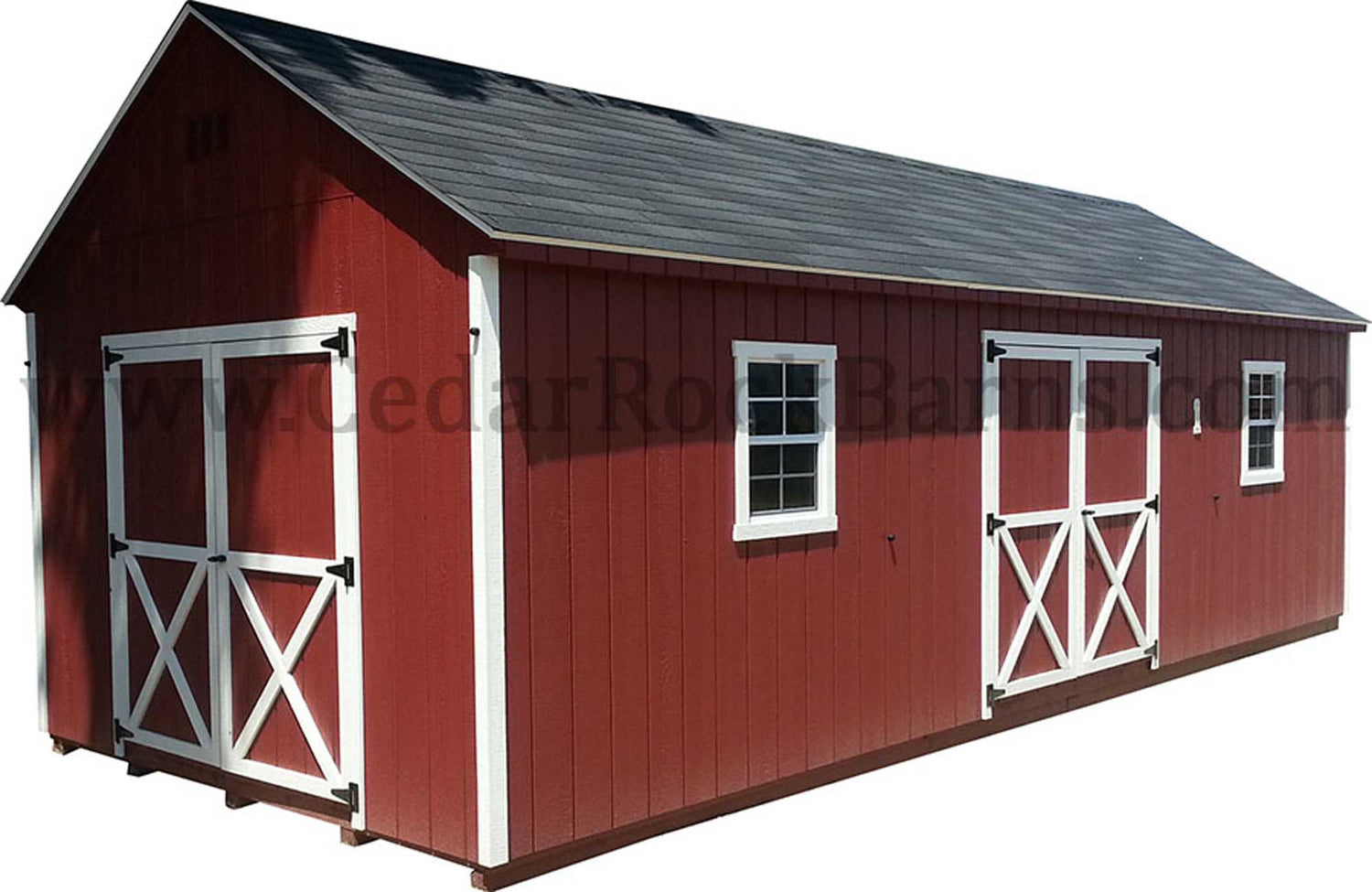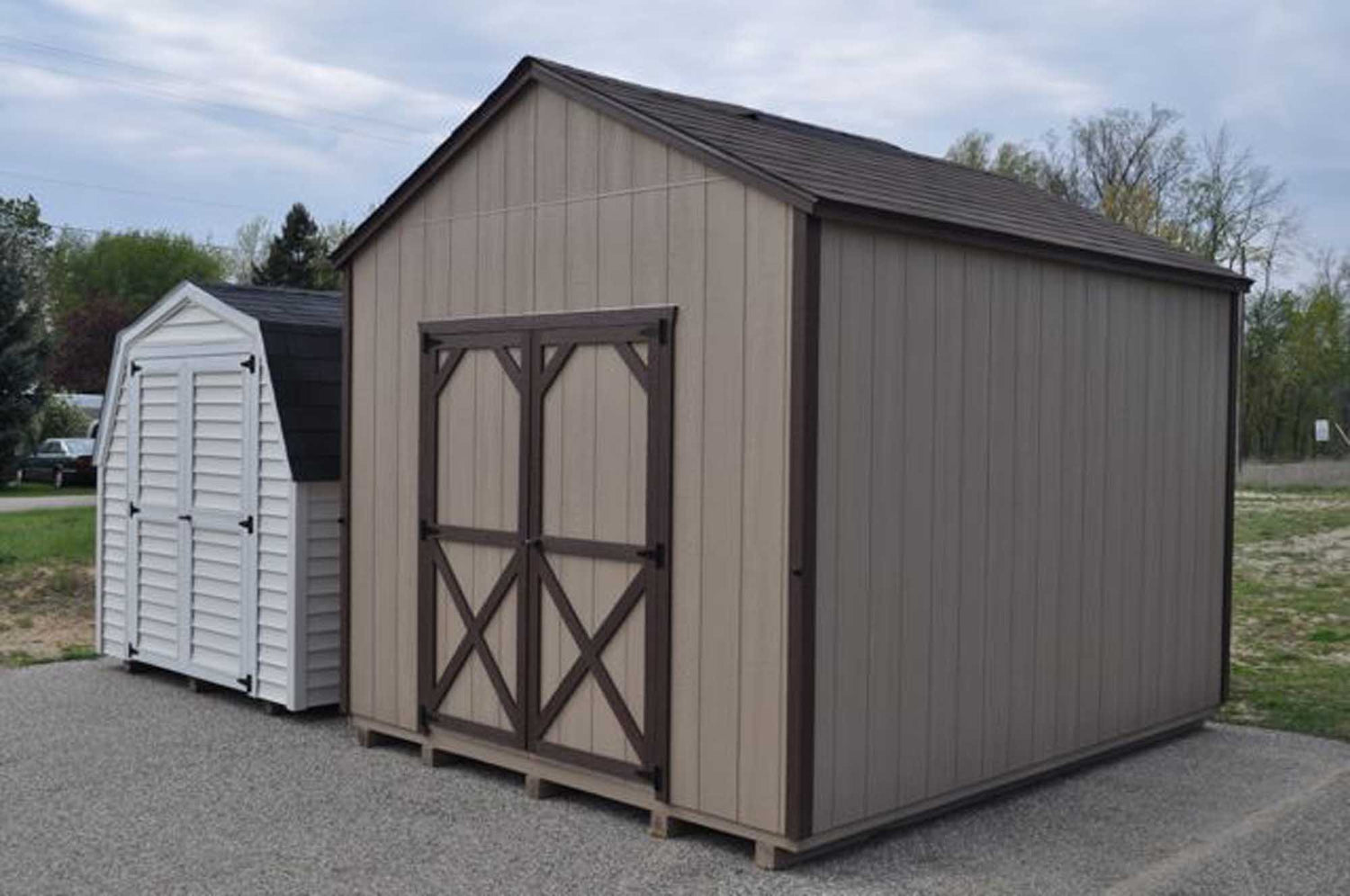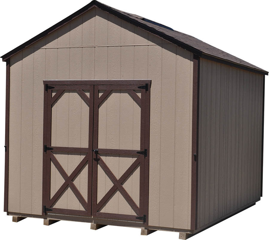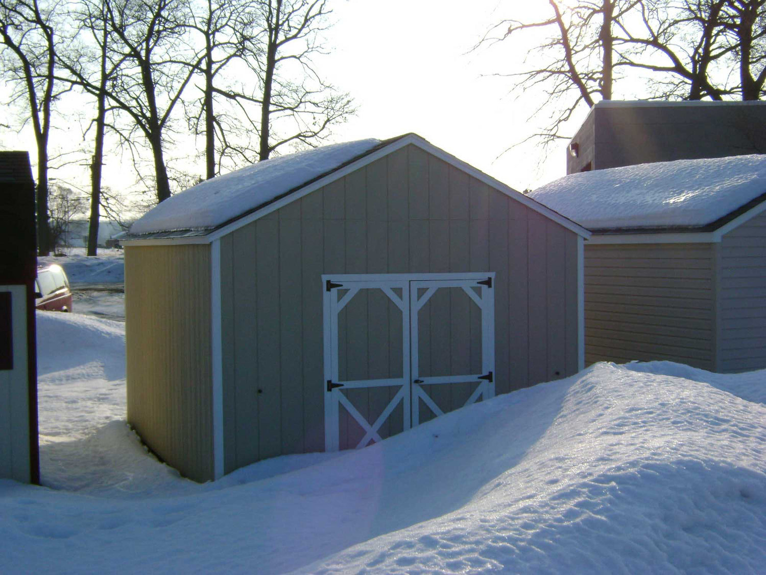 Standing A Little Over 10’ Tall And With 7’ 4” Side Walls This Painted Cottage Portable Storage Building Works As A Storage Building Or A Workshop. Our Painted Cottage Shed Comes Standard With Double Wood Swinging Doors and Two Tone Paint. Available From 8x8 Up To 16x48 These High Quality Amish Crafted Storage Buildings Have 16” o.c. 2x4 Wall Framing, IKO 25 Year 3 Tab Shingles, Treated 2x4 Floor Joists, And T1-11 Siding.