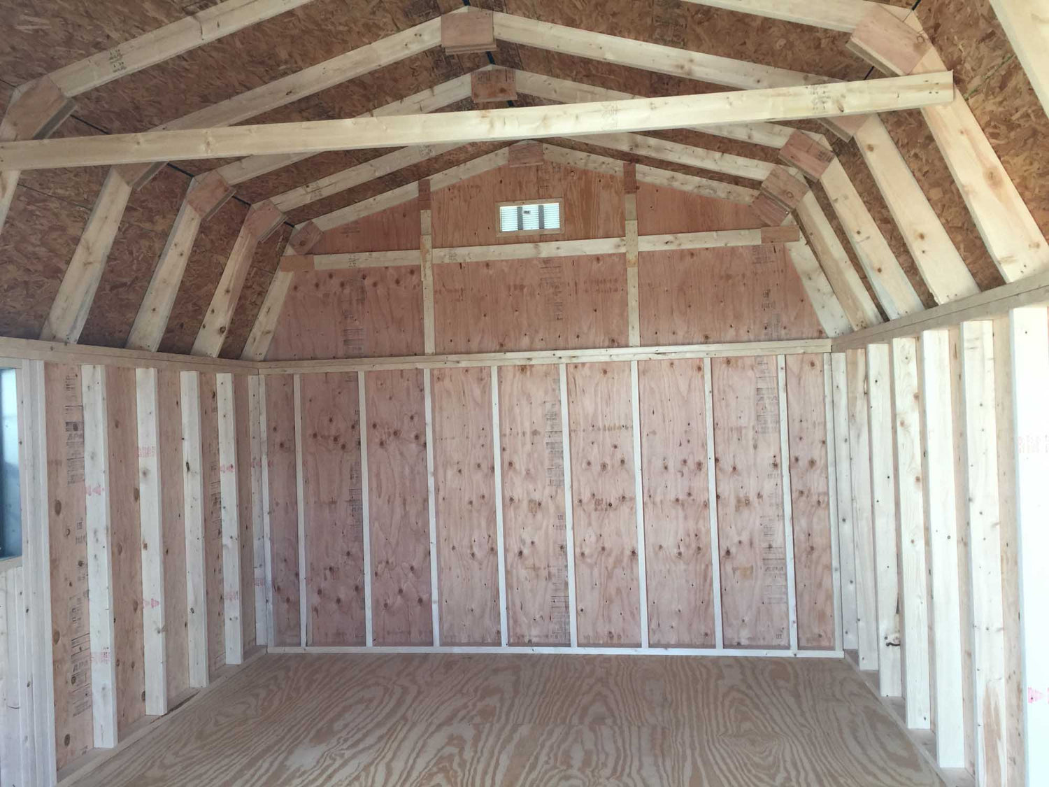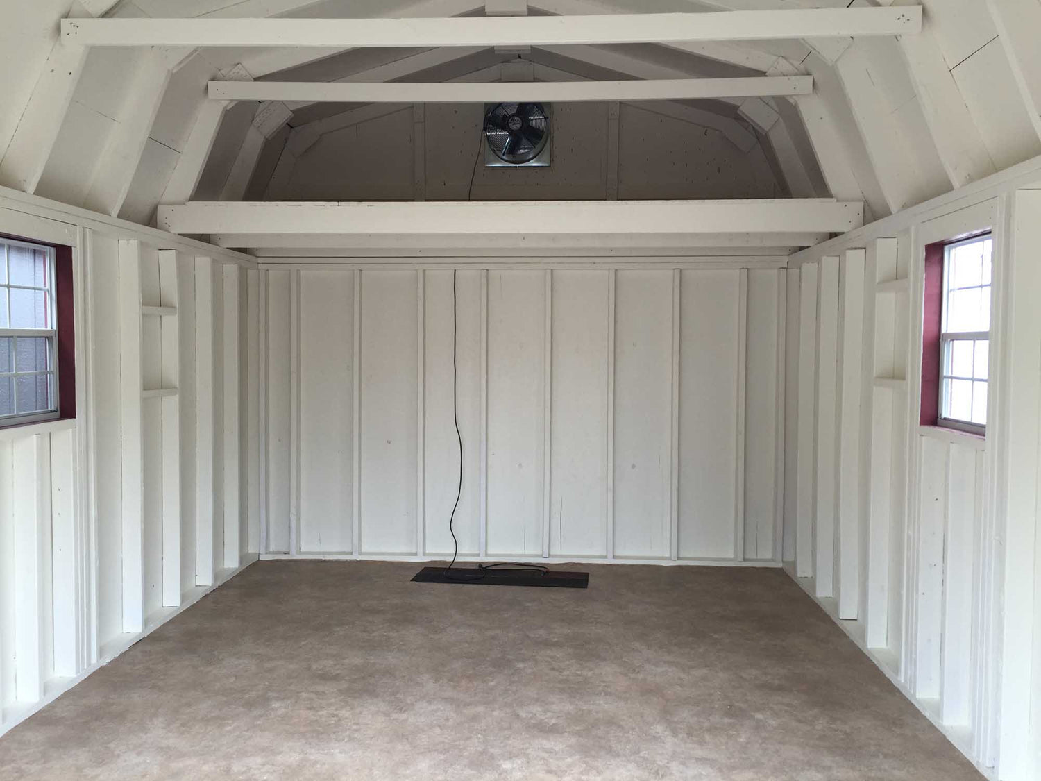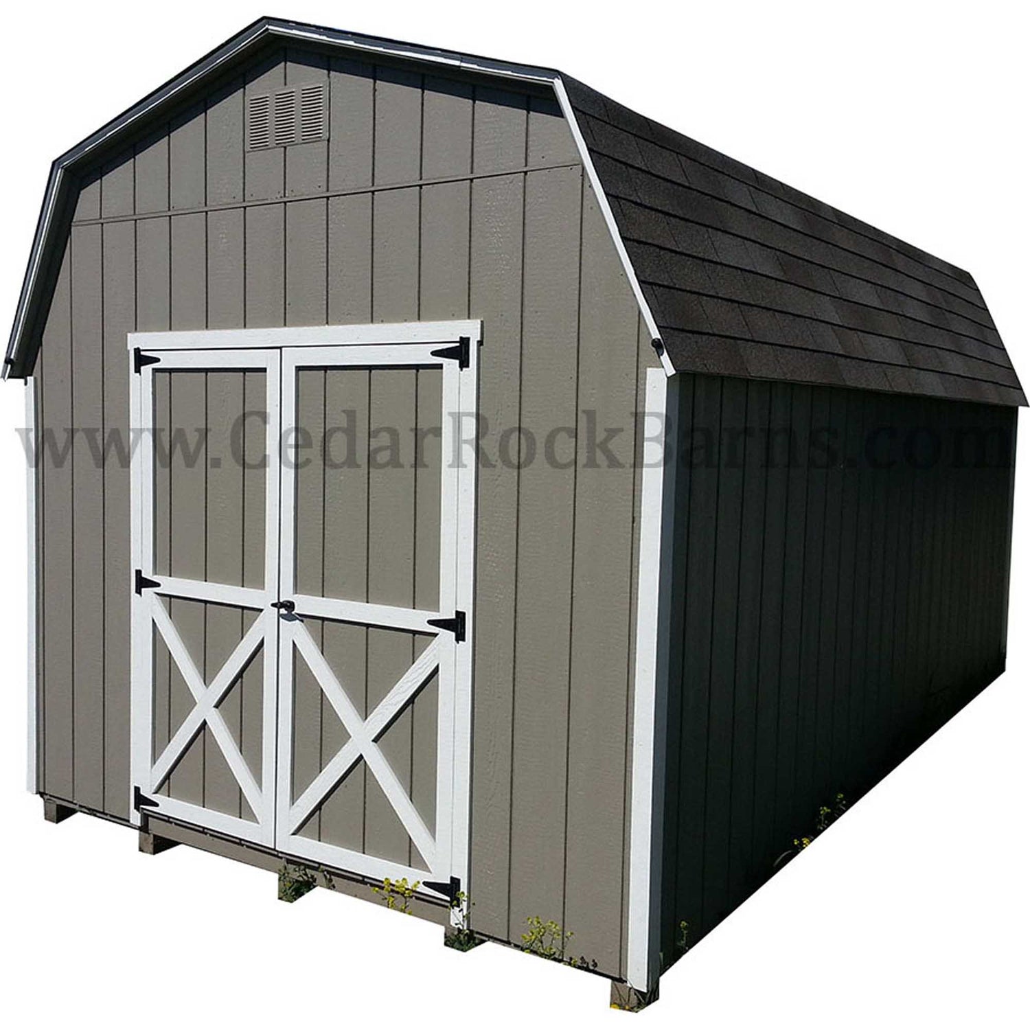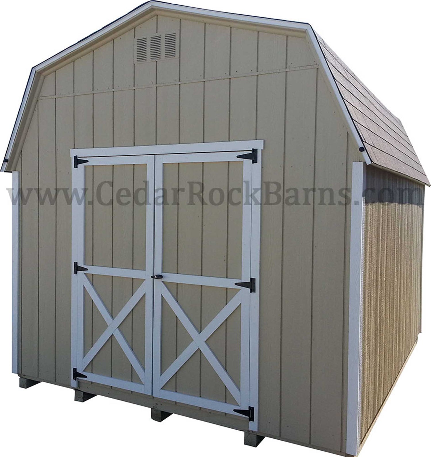 Our Painted High Barn Storage Building Built By Mast Mini Barns Offers The Advantage Of Having A Gambrel Roof To Allow Maximum Storage Space. This Building Comes Standard With 5x6 Double Swinging Doors, 6’ Sidewalls and Stands At 10’Tall.