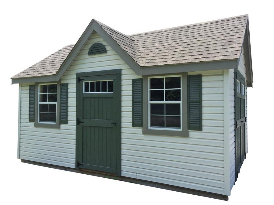 With a Standard Front Dormer, 32” Entrance Door, And Two Windows With Screens And Shutters, The Vinyl Chalet Portable Sheds Offer A Original Look To The Classic Outside Storage Building. A Set Of Vinyl Swinging Double Doors Are Also Standard In Order To Fit Larger Items Into The Building. Lifetime Vinyl Siding On This Shed Offers A Maintenance Free Solution To Your Garden Storage Needs. Available In Sizes From 8x12 Up To 12x36.