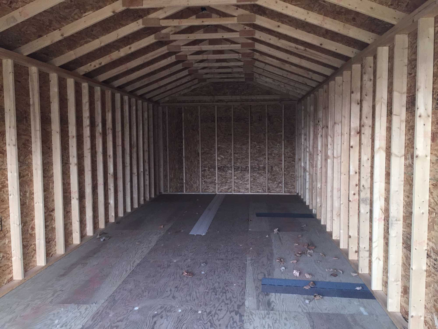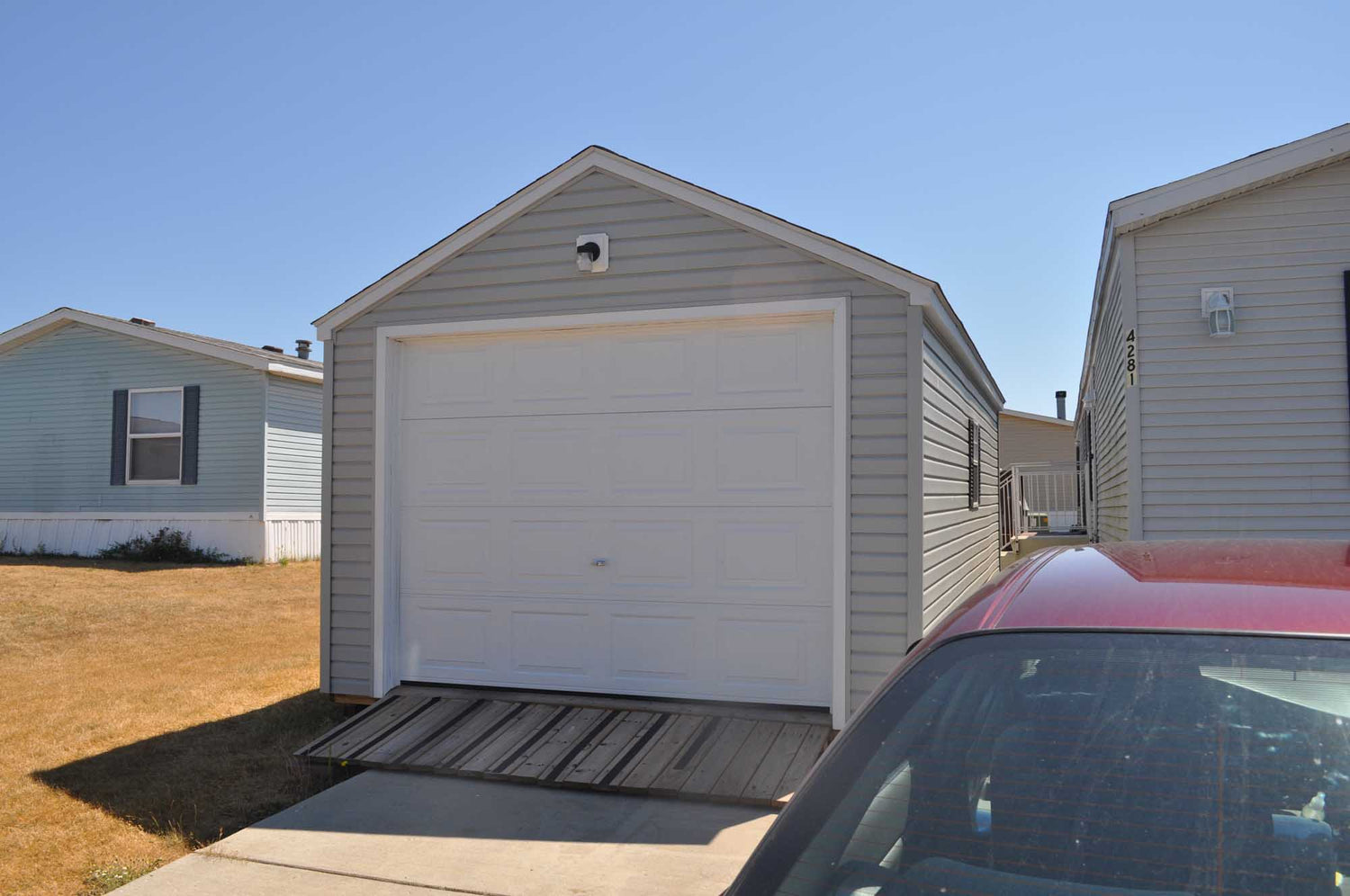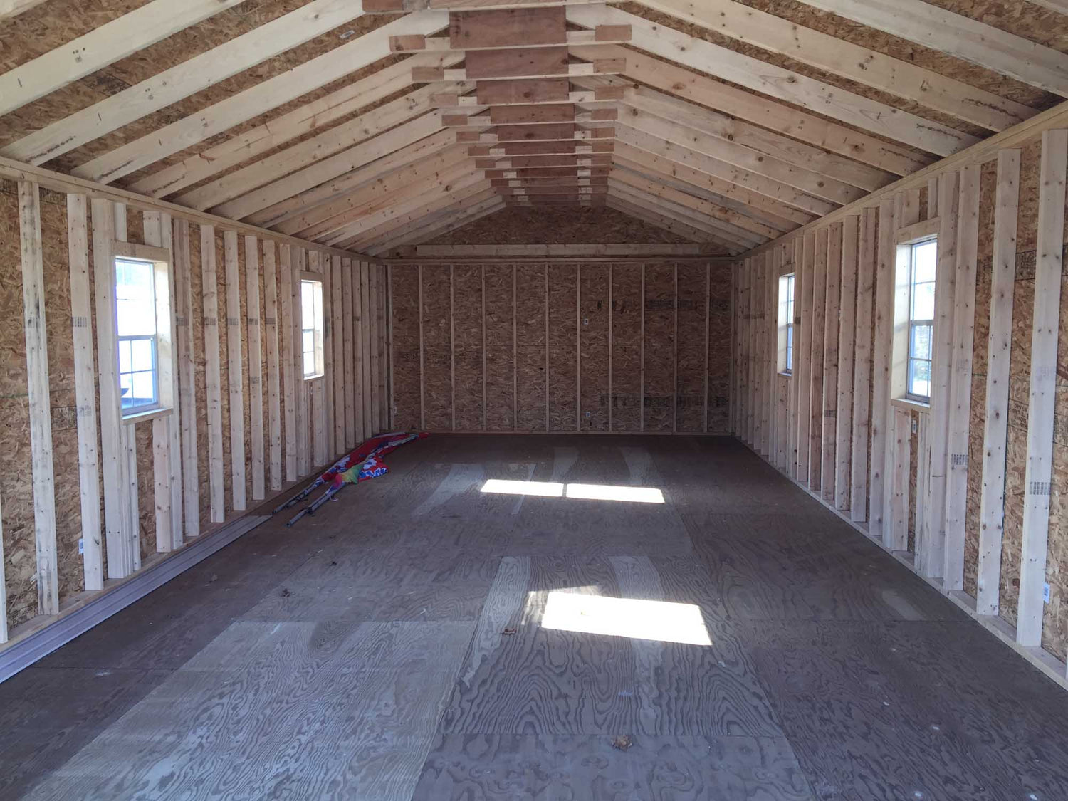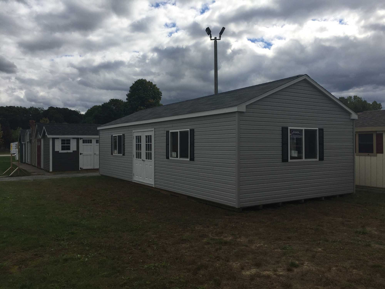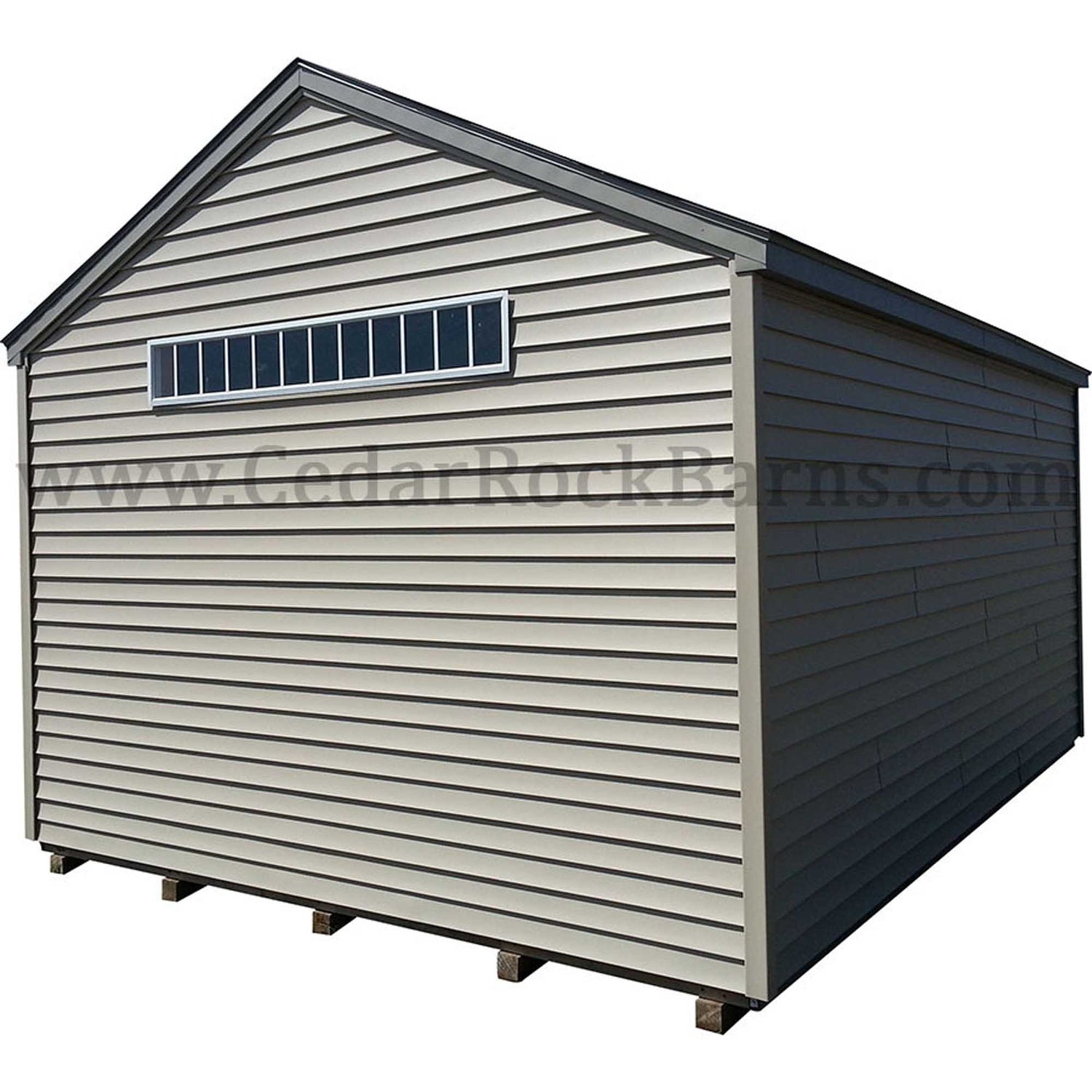The Vinyl Garage Storage Building Comes Standard With An 8’ Steel TracRite Roll Up Door, 7’ 4” Sidewalls and 3/4" Treated Floors In Order To Hold A Vehicle Or Heavy Equipment. Larger Doors And Sectional Overhead Garage Doors Are Also Available On The Garage Storage Buildings. This Building Also Comes With Maintenance Free Lifetime Vinyl Siding (Your Choice Of Colors), And 3 Tab IKO 25 Year Shingles. These Portable Storage Buildings Are Delivered Fully Built And Available In Sizes Ranging From 12x16 And Up To 16x48.