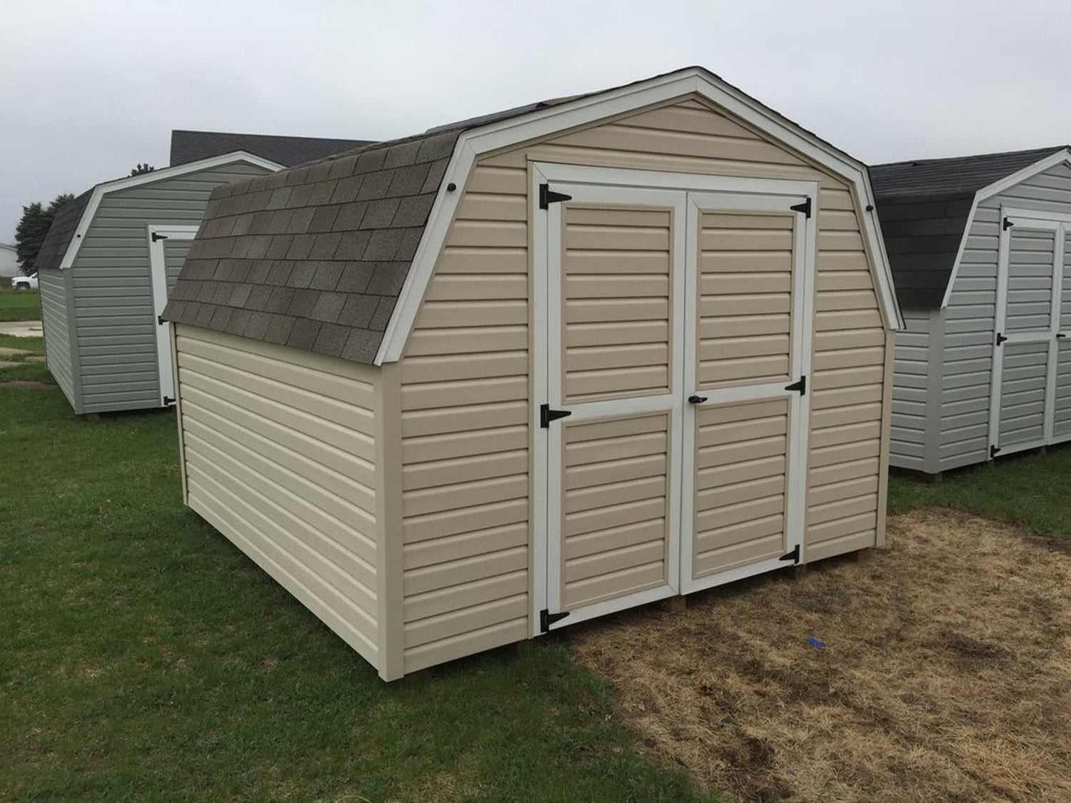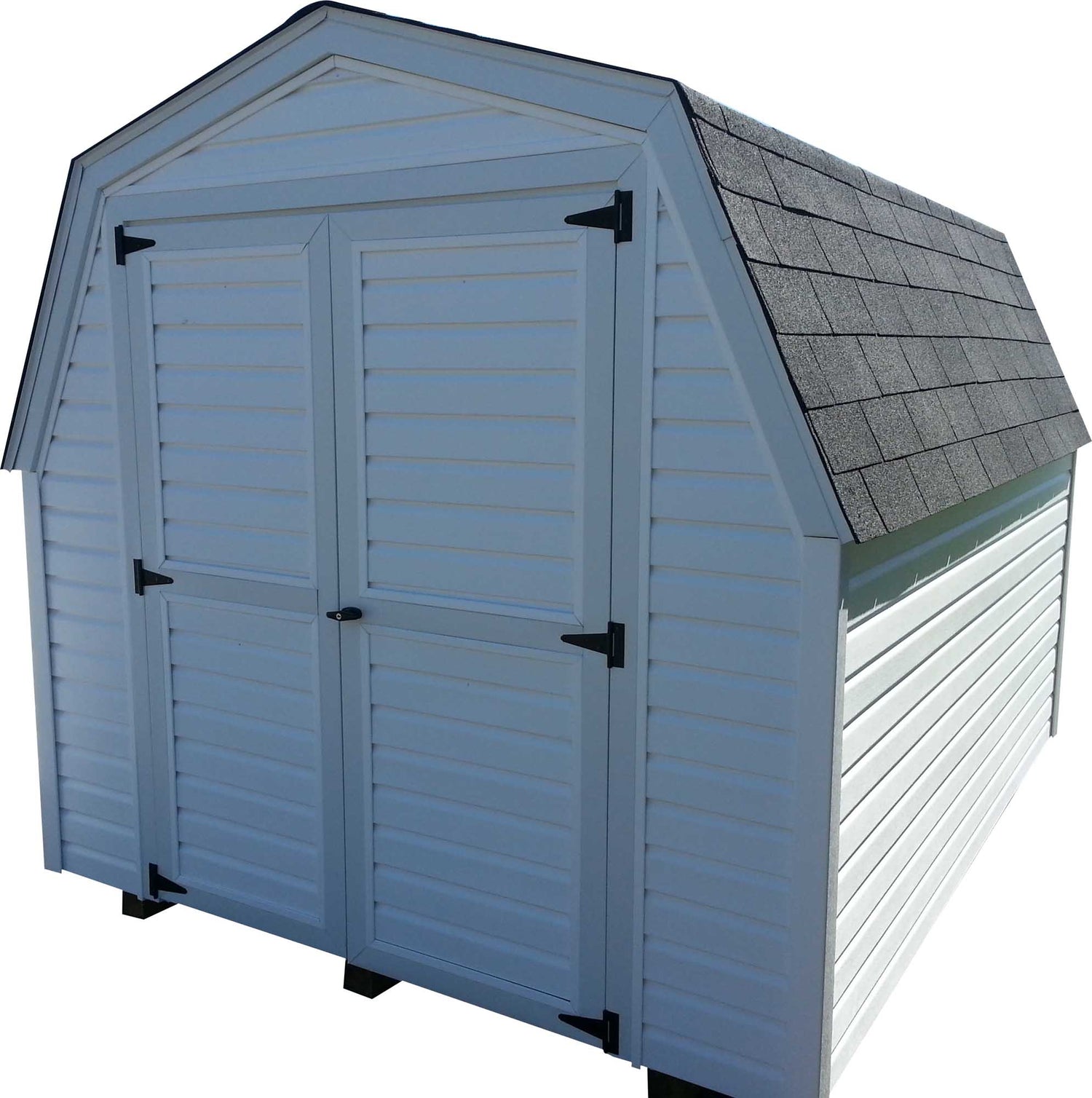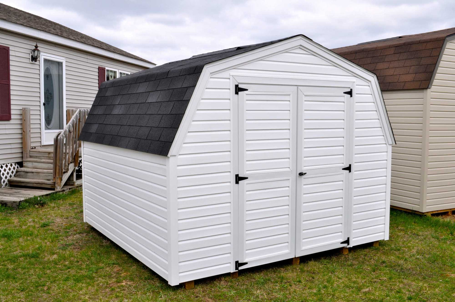 Our 8’ Vinyl Pro Series Storage Shed Is Your Best Choice If You Are Looking For The Most Storage Space At The Lowest Price. With Lifetime Vinyl Siding, 4’ Side Walls, Gambrel Roof Style, Treated 4x4 Runners, 2x4 Floor Joists 12” oc., And 5/8“ Exterior Grade Plywood Floors Standard, The Amish Constructed Vinyl Pro Series Portable Shed Is The Perfect Space For Outdoor / Garden Storage.