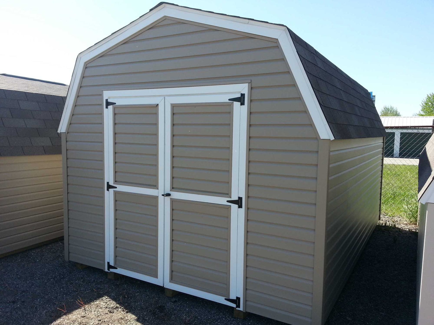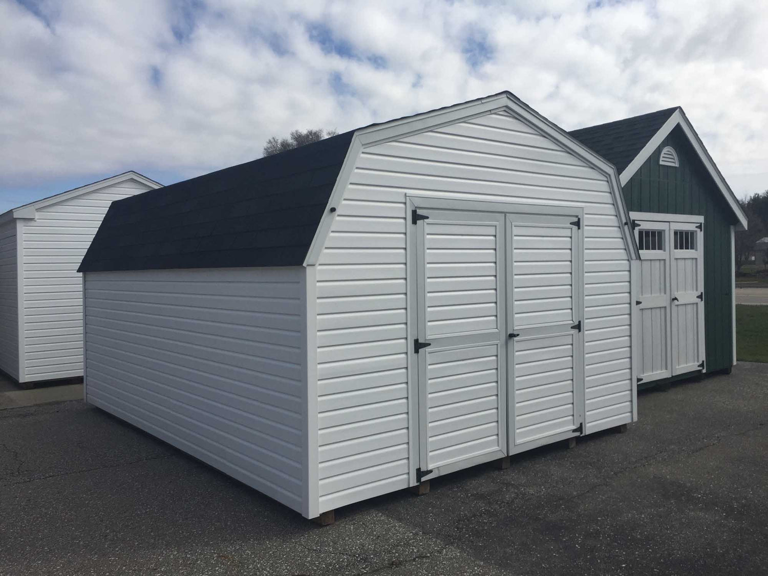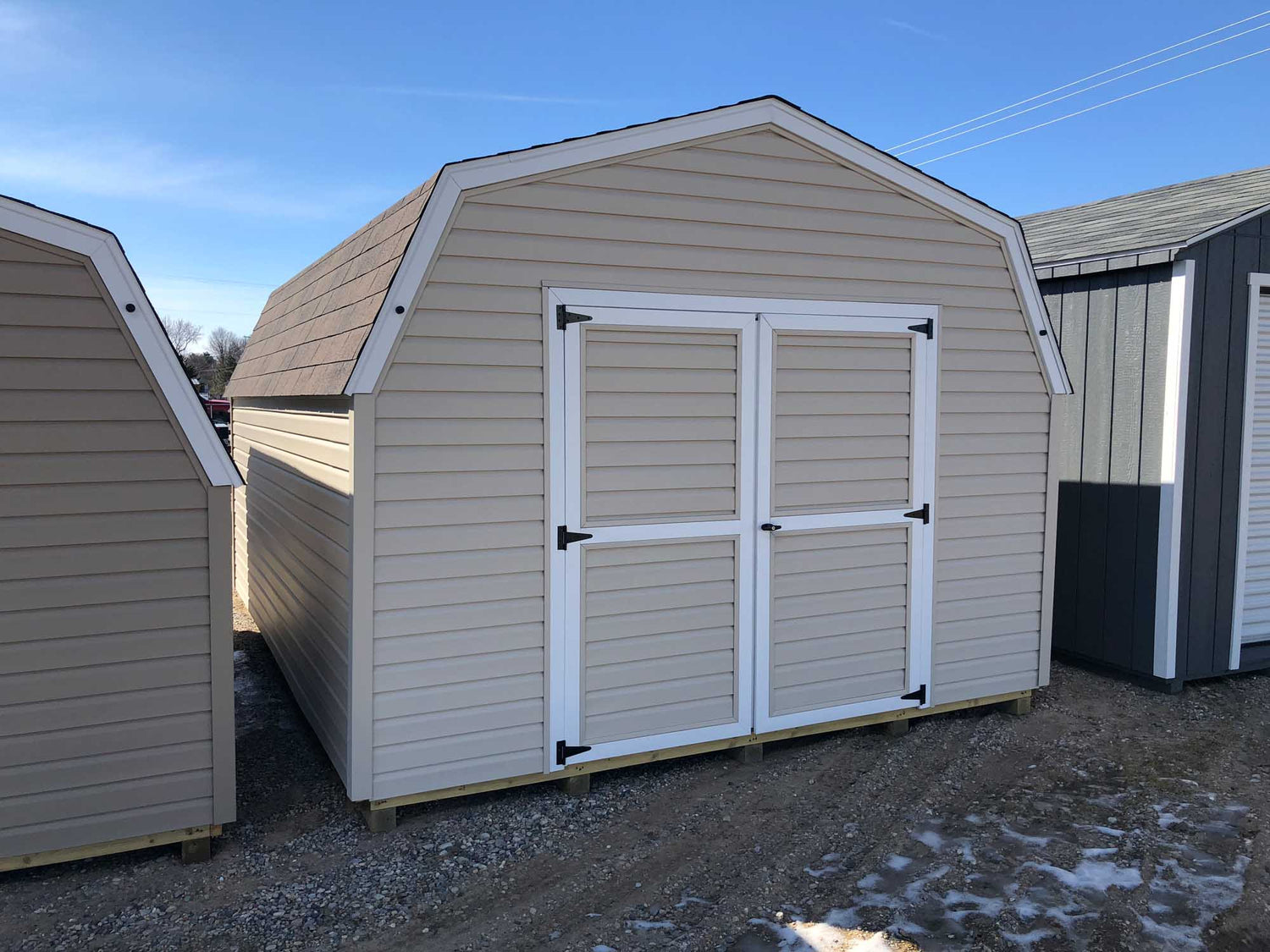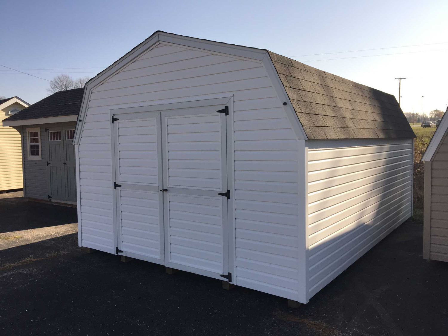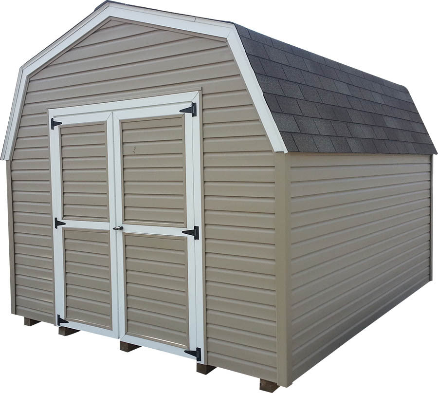 9’ Vinyl Pro Series Portable ShedsOur 9’ Vinyl Sided Pro Series Portable Sheds Are Available In Widths Of 8’, 10’, and 12’ and Available Up To 16’ Long. With 5’ Sidewalls And Gambrel Barn Style Roof, This Amish Built Storage Shed Gives You Lots Of Storage Space For The Money. Built With 2x4 Construction, 1/2 “ Plywood Floors, 12” o.c. Joists, and 4x4 Treated Wood Runners and Lifetime Vinyl Siding This Building Makes A Great Addition To Any Garden or Backyard.
