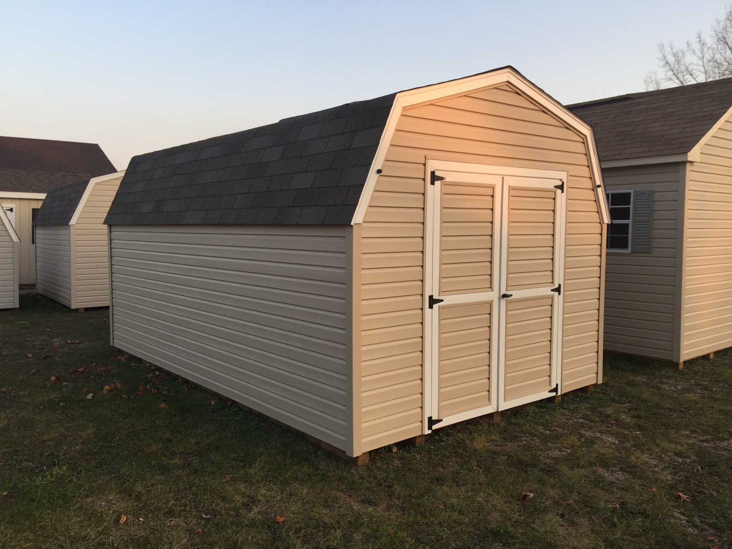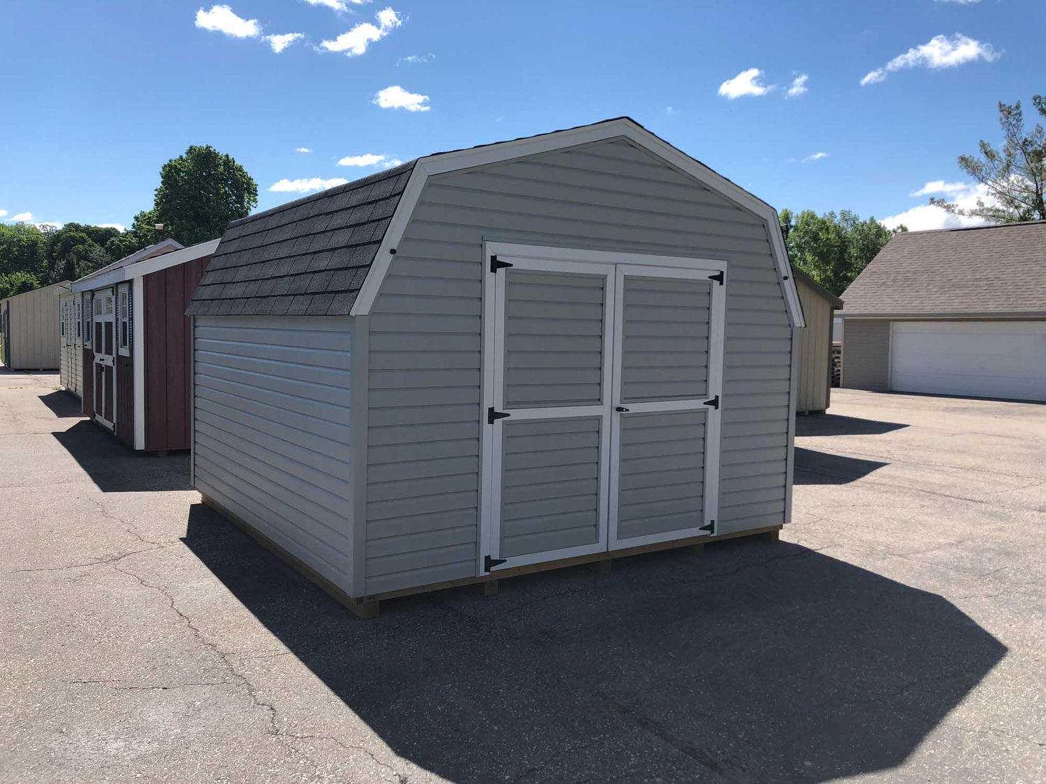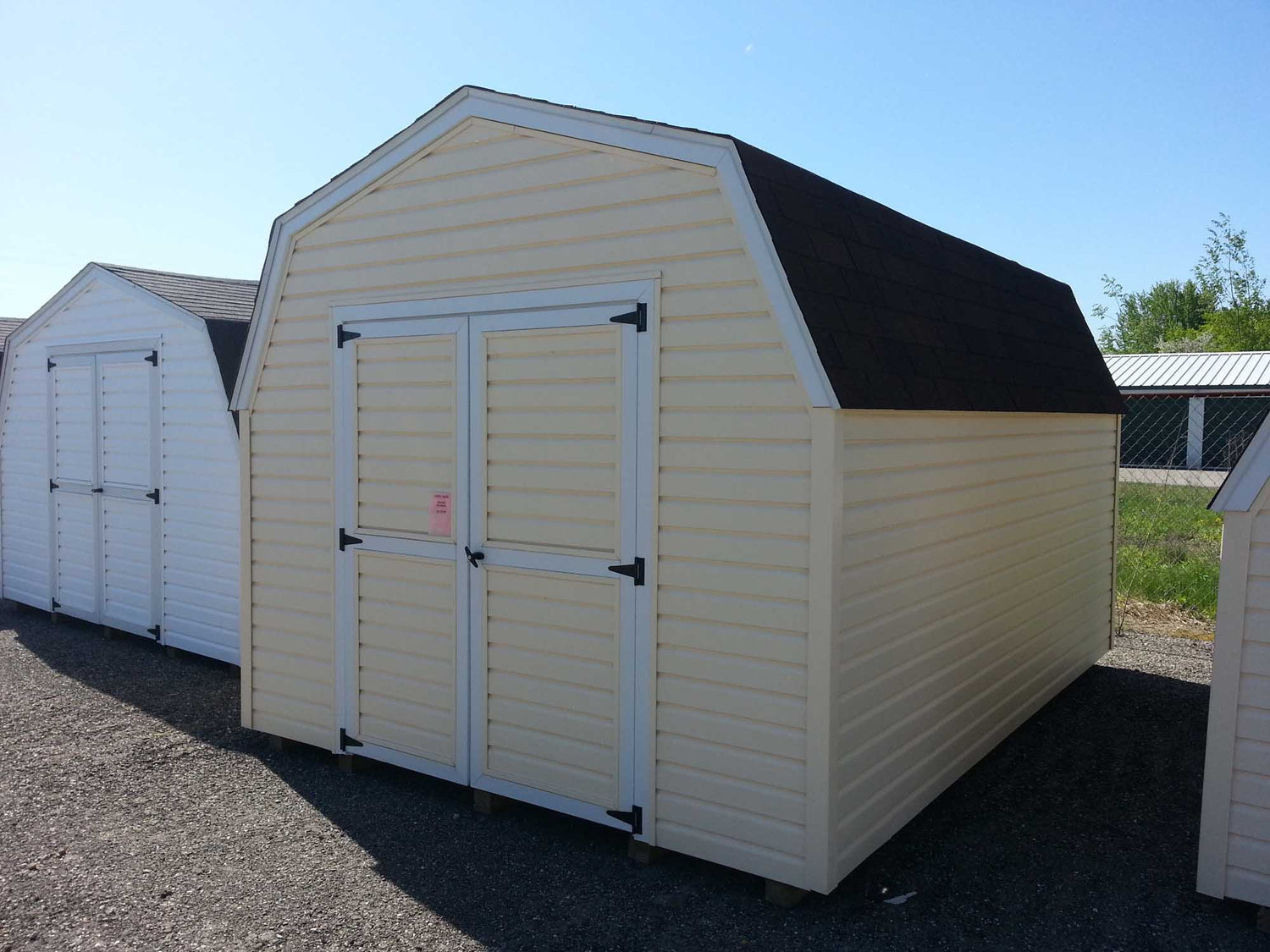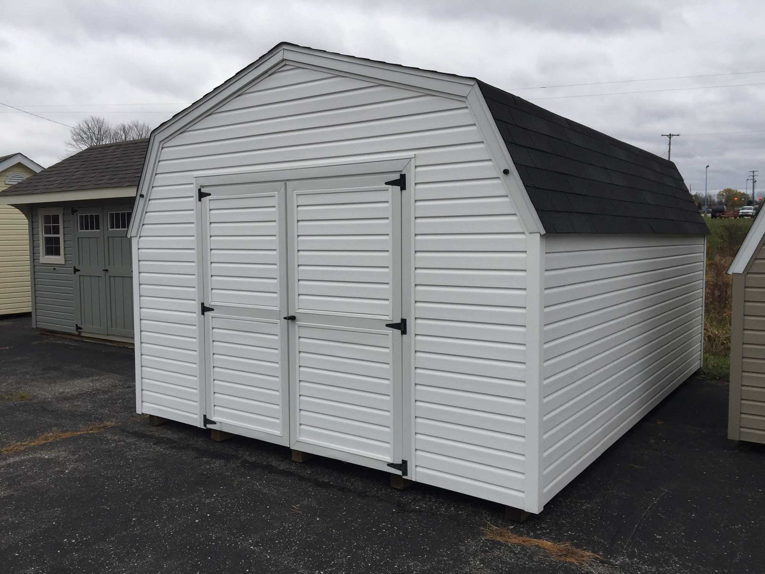 9’ Vinyl Pro Series Portable ShedsOur 9’ Vinyl Sided Pro Series Portable Sheds Are Available In Widths Of 8’, 10’, and 12’ and Available Up To 16’ Long. With 5’ Sidewalls And Gambrel Barn Style Roof, This Amish Built Storage Shed Gives You Lots Of Storage Space For The Money. Built With 2x4 Construction, 1/2 “ Plywood Floors, 12” o.c. Joists, and 4x4 Treated Wood Runners and Lifetime Vinyl Siding This Building Makes A Great Addition To Any Garden or Backyard.